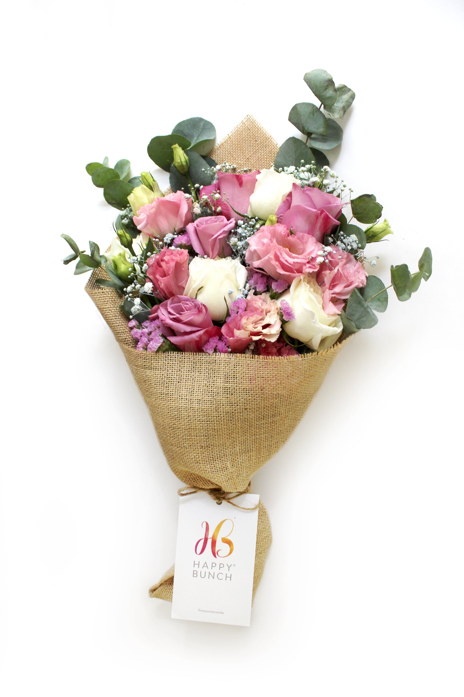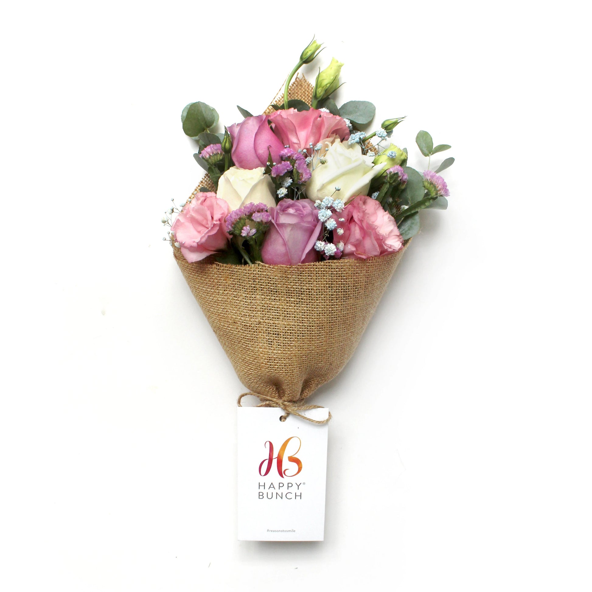 Roses, Eustomas, Baby's Breath, Statice & Eucalyptus - Cake Together - Online Cake Delivery