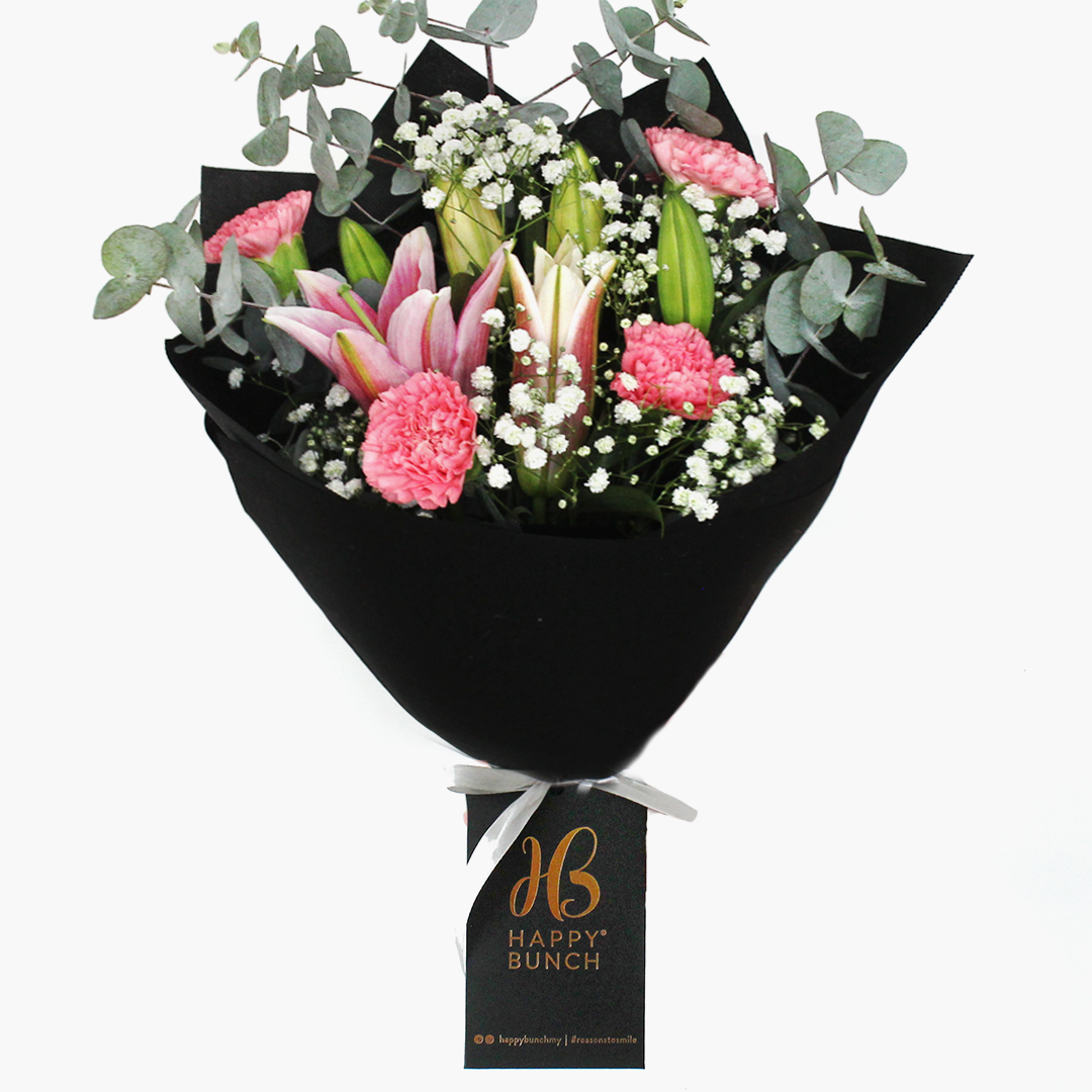 Lily, Carnations, Baby's Breath & Eucalyptus - Cake Together - Online Cake Delivery